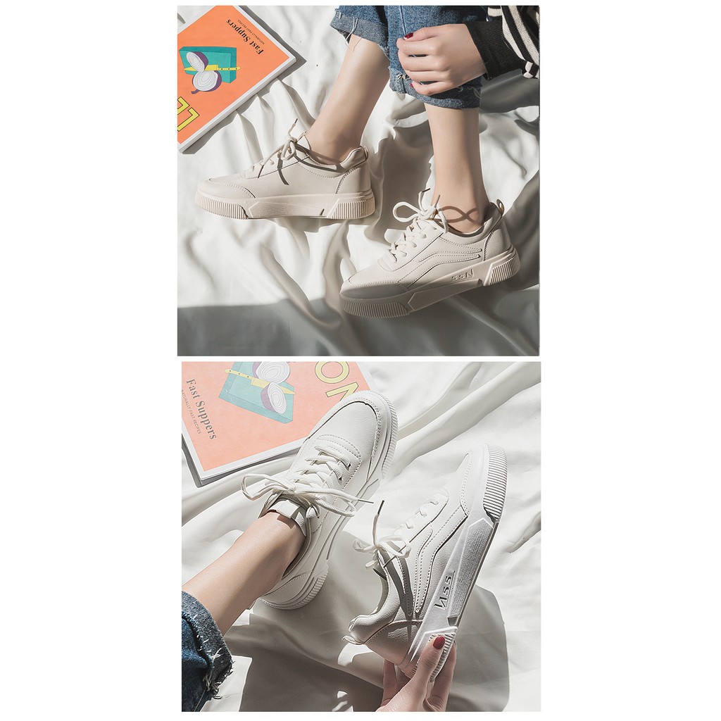 women's sneakers korean style beige white platform sole street fashion skateboard shoes