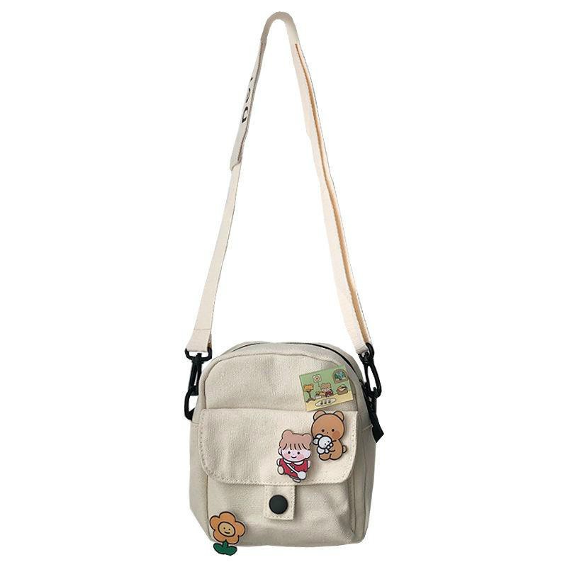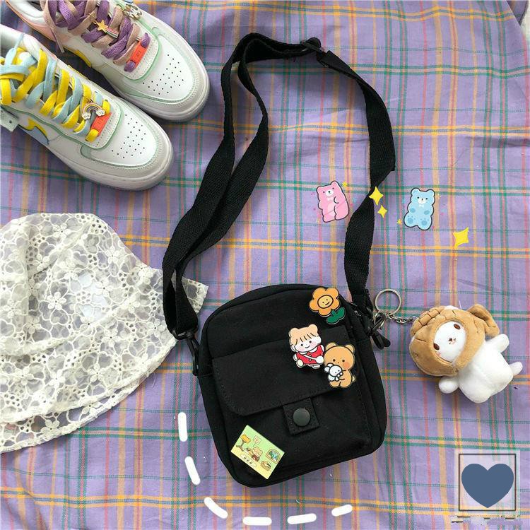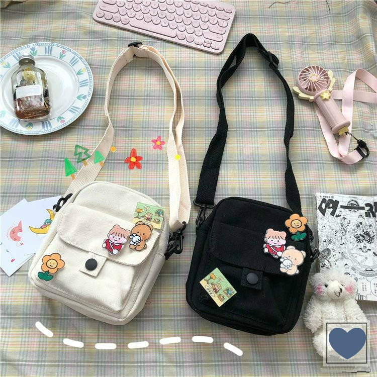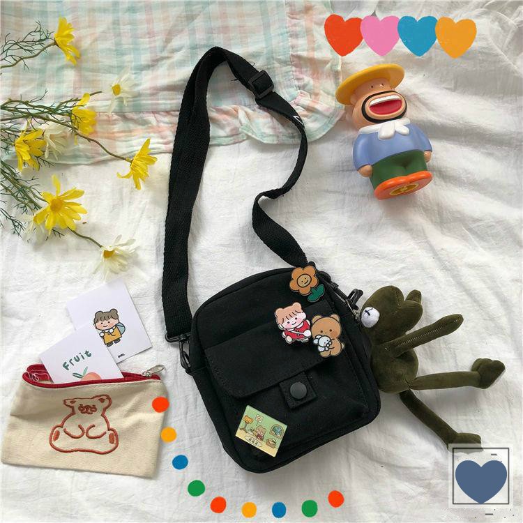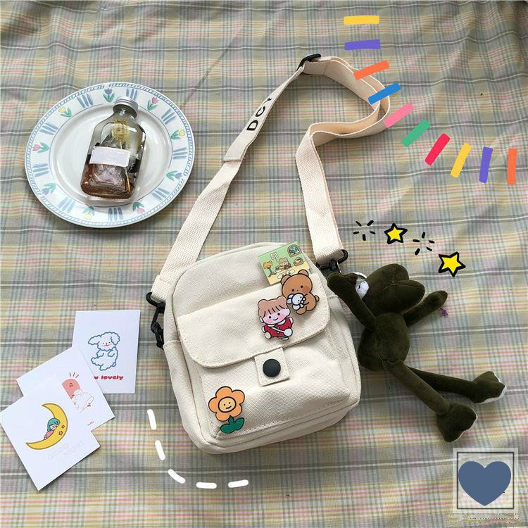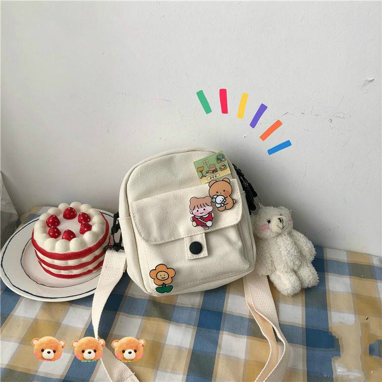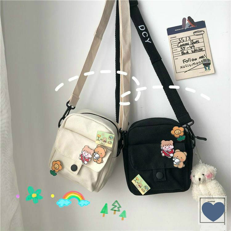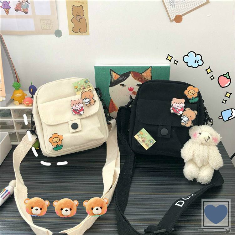 2023 New Korean ins express soft girl student canvas bag in small female Japanese Harajuku CHIC cartoon messenger bag